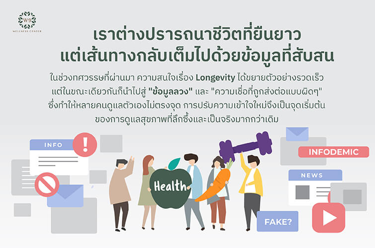 ในช่วงสิบปีที่ผ่านมา แนวคิดเรื่อง “Longevity” หรือ “ความยืนยาวของชีวิต” ขยายตัวรวดเร็วอย่างที่ไม่เคยเกิดขึ้นมาก่อน ผู้คนหันมาสนใจการชะลอวัย ตั้งแต่การตรวจสุขภาพเชิงลึก อาหารเสริม การออกกำลังกายแบบใหม่ ไปจนถึงแนวคิดเกี่ยวกับการจำกัดแคลอรีและสูตรลับที่อ้างว่าสามารถเพิ่มอายุขัยได้ ความสนใจนี้สะท้อนความปรารถนาที่แท้จริงของมนุษย์ คือการมีชีวิตที่ยืนยาวกว่าเดิม พร้อมสุขภาพที่ดีขึ้นกว่าเดิม แต่ในขณะเดียวกัน กระแสที่เติบโตอย่างรวดเร็วนี้ก็ทำให้ ความเข้าใจผิดเกี่ยวกับ Longevity ถูกส่งต่ออย่างกว้างขวาง ไม่ว่าจะเป็นข้อมูลลวง ความเชื่อที่คลาดเคลื่อน หรือคำแนะนำที่เหมือนใช้ได้กับทุกคน ซึ่งในความเป็นจริงกลับทำให้หลายคนดูแลสุขภาพไม่ตรงจุด หรือเลือกวิธีที่ไม่เหมาะกับร่างกายของตนเองเลยด้วยซ้ำ